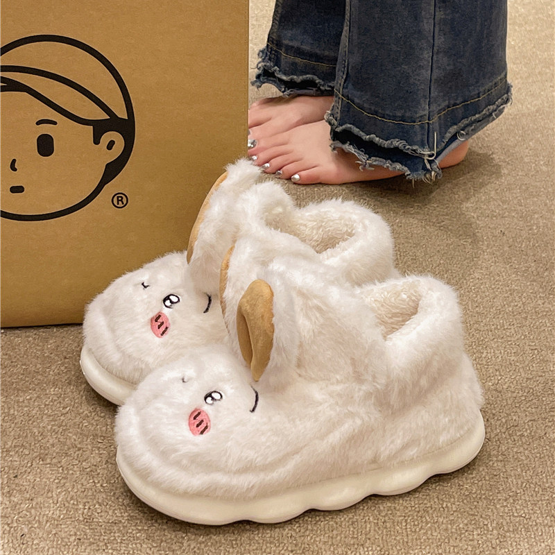 室内居家可爱兔子毛绒保暖外穿厚底防滑包跟棉鞋 女冬季 高帮棉拖鞋由
