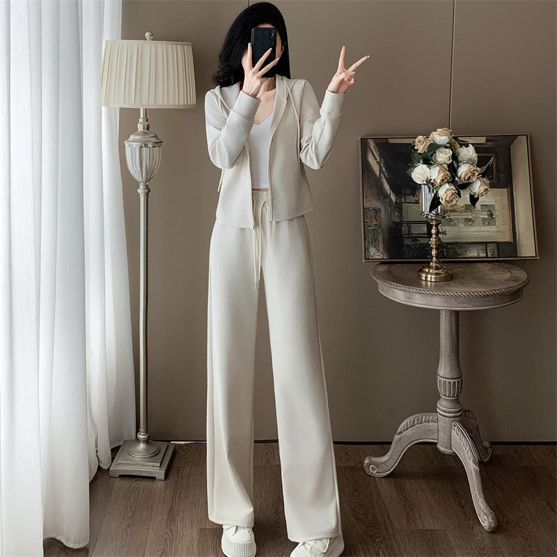 为您提供商品修身 网红炸街休闲套装 女2025春秋季 新款 两件套 连帽卫衣拉链阔腿裤的详细介绍,