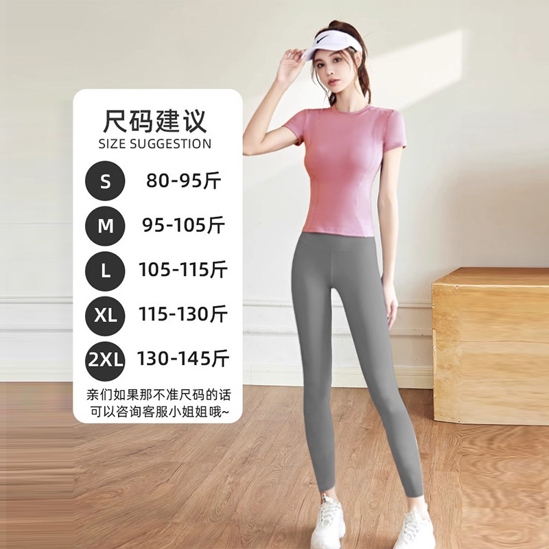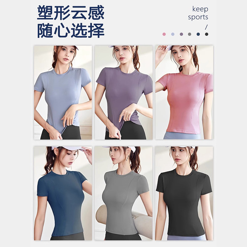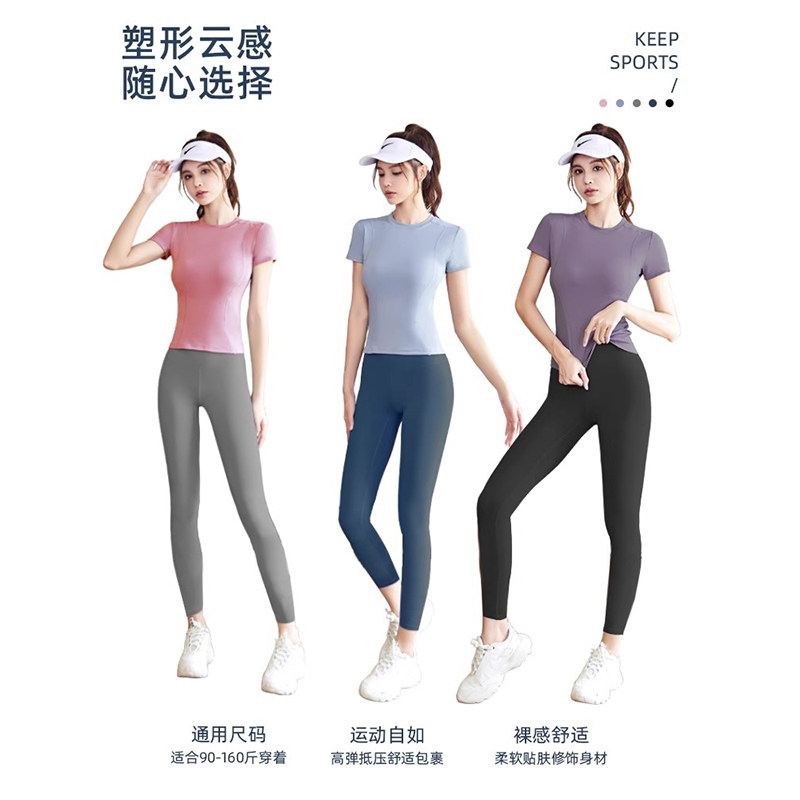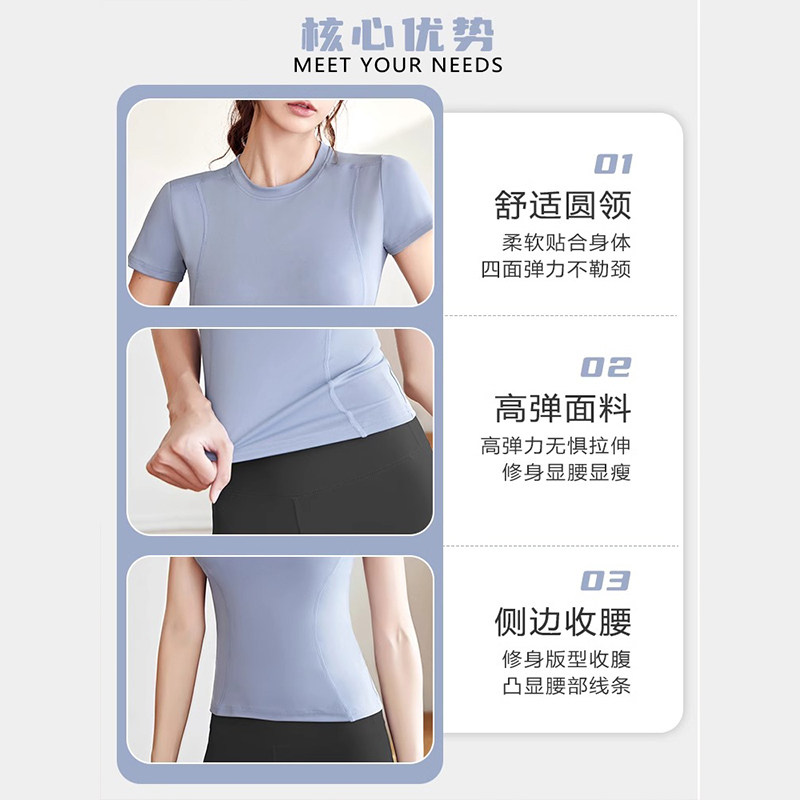 新款 女夏薄款 高弹速干普拉提训练服套装 瑜伽t恤运动上衣 健身短袖