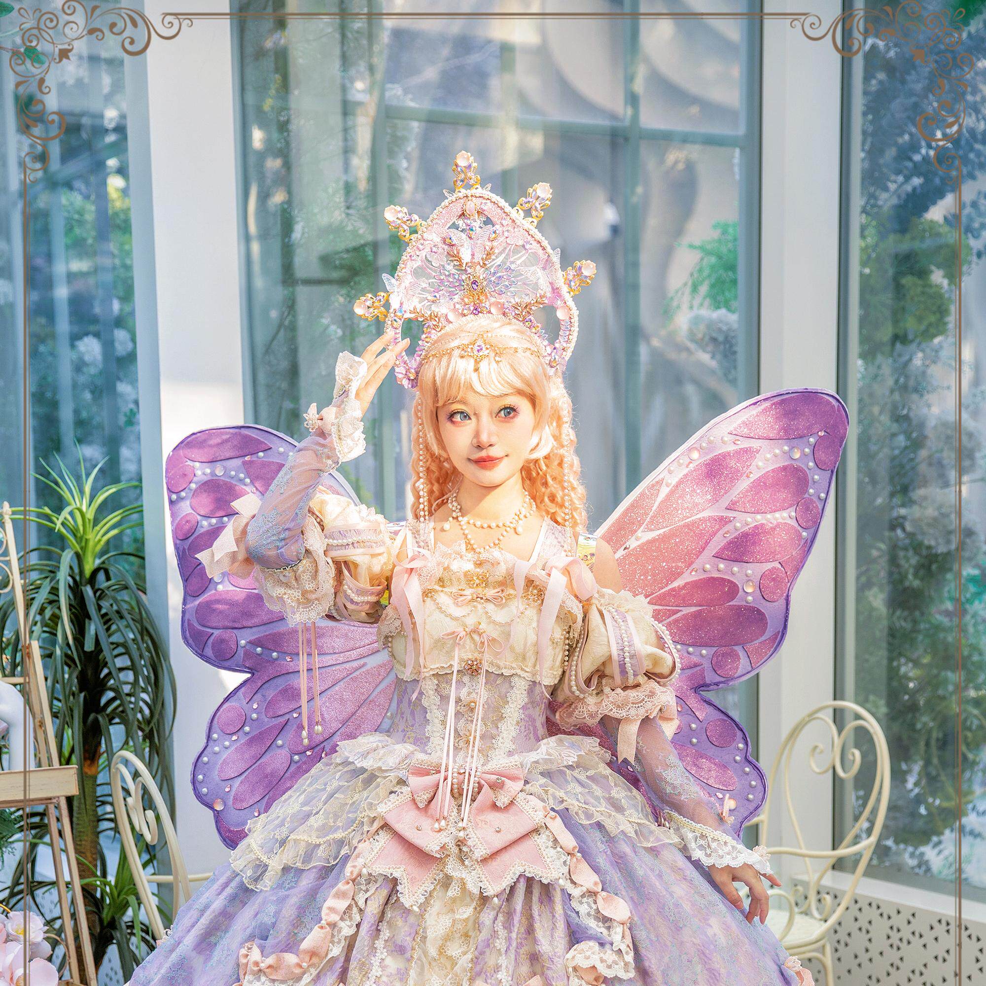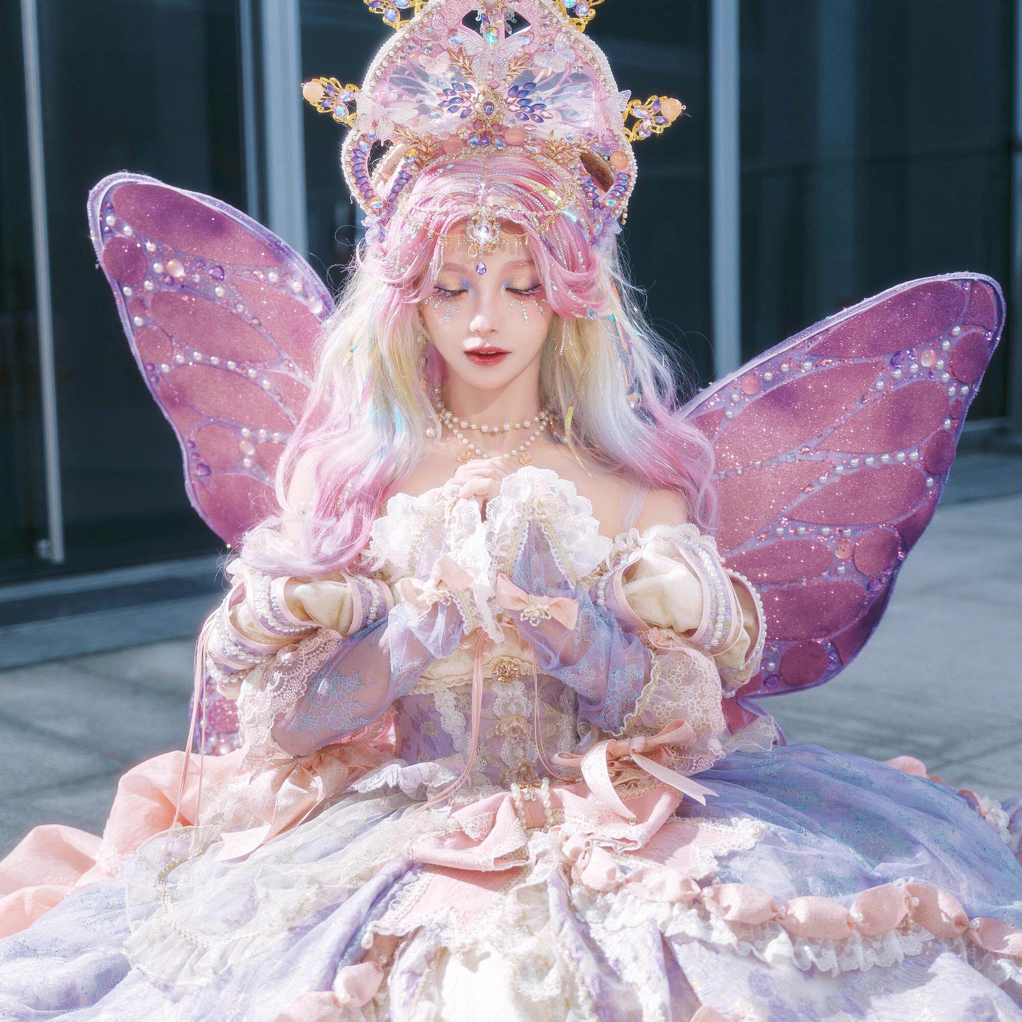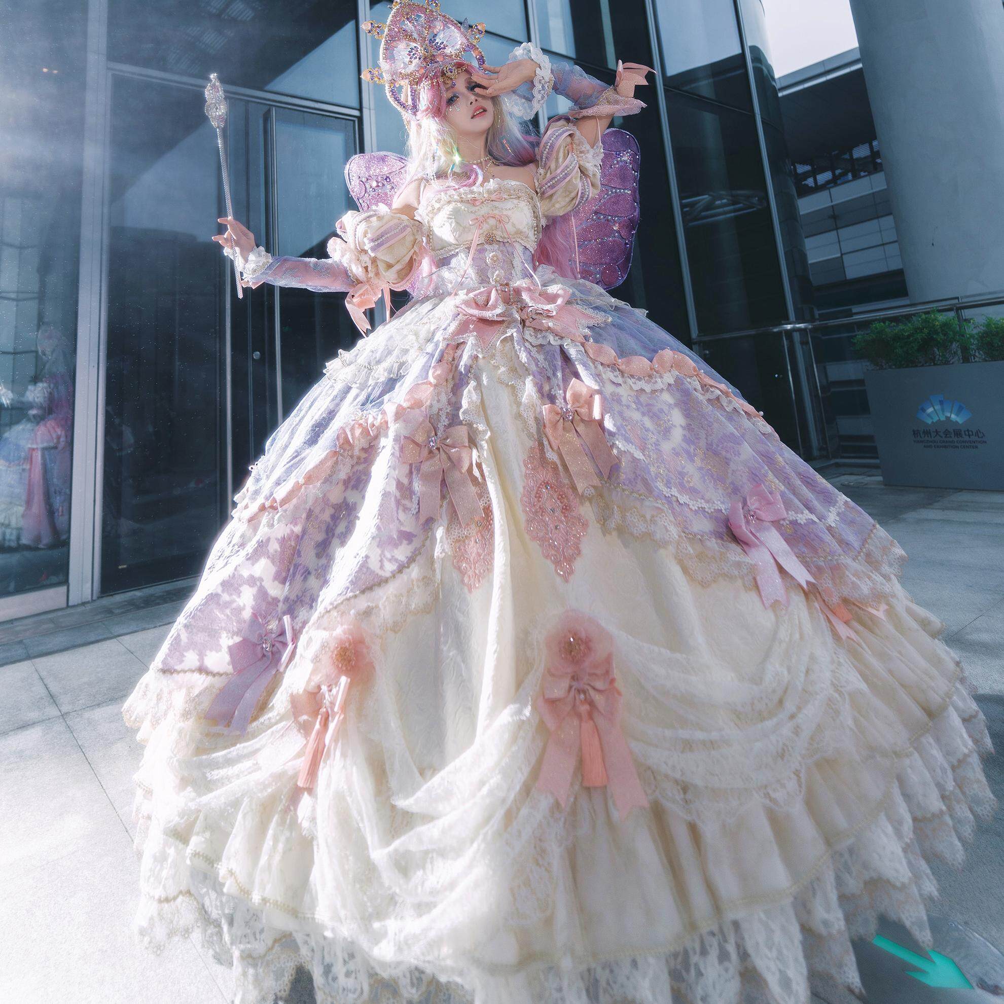 日系洛丽塔软妹大小姐公主lo裙 蝴蝶粉色可爱lolita连衣裙温柔洋装