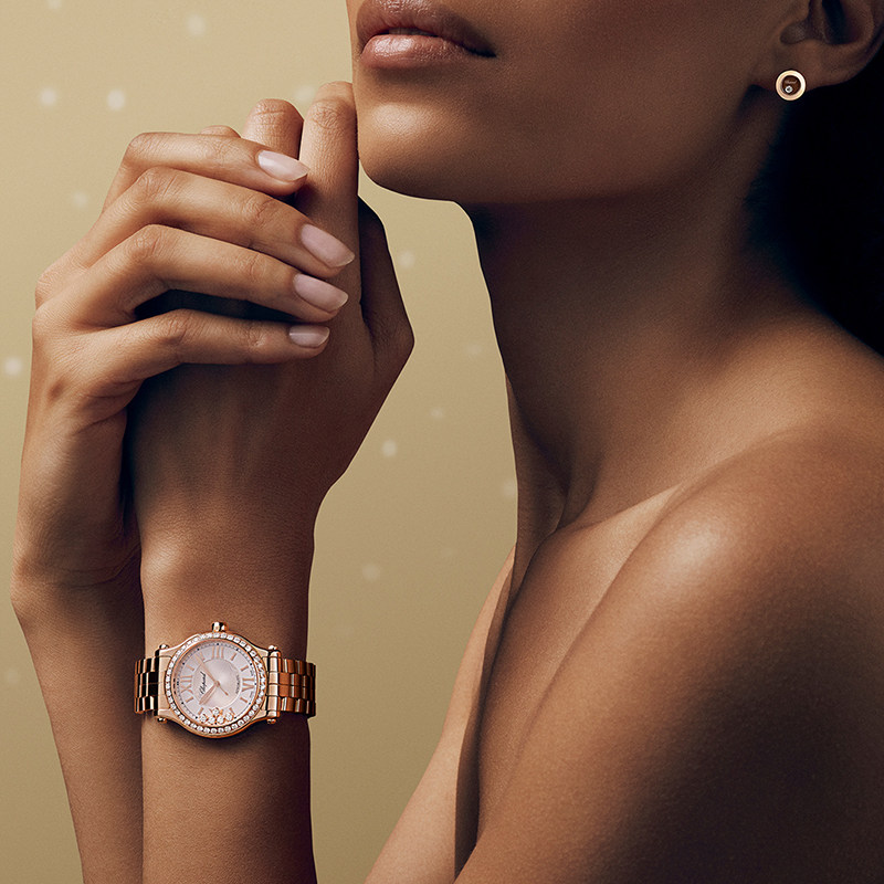 Chopard萧邦手表快乐钻石33mm玫瑰金机械腕表女表生日礼物送女友