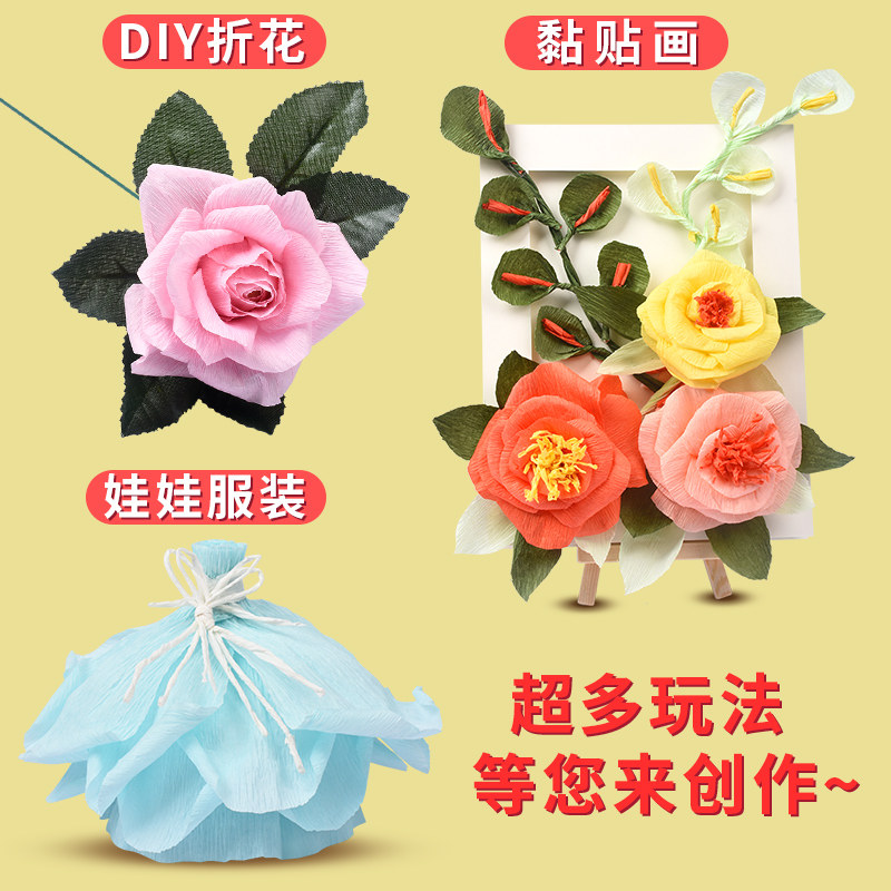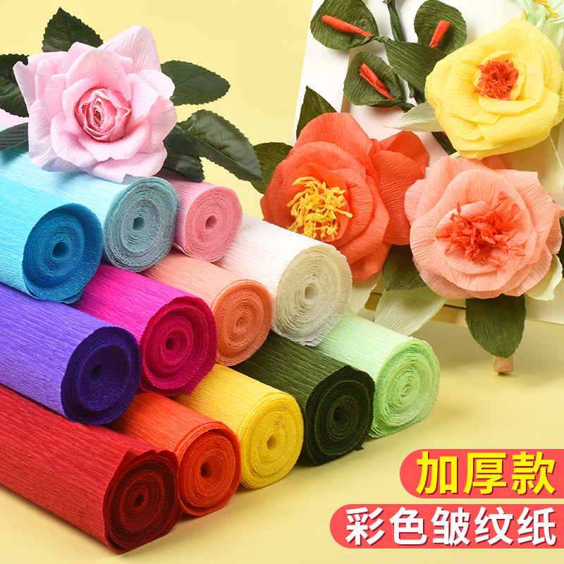 皱纹纸手工花材料褶皱纸彩色加厚纸艺花幼儿园手揉白色花艺邹纹纸