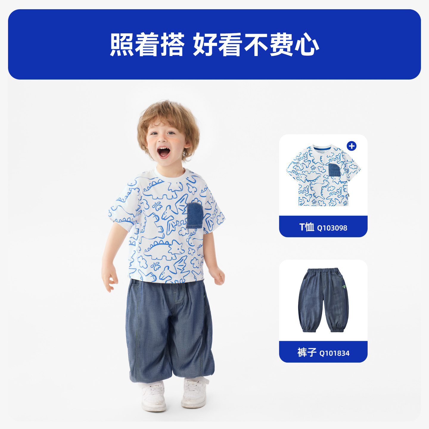 儿童半袖 男宝宝夏 小童童装 T恤户外夏装 恐龙凉感T 齐齐熊男童短袖由