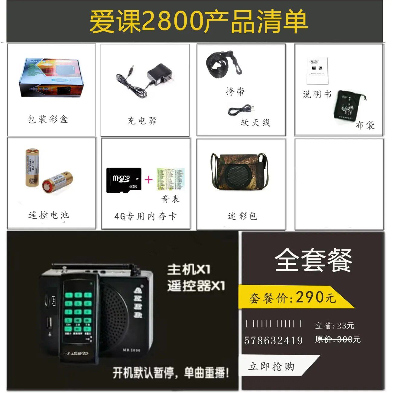 为您提供商品款 插小卡带蓝牙功能 爱课MR2800无线遥控扩音器定制改装 AKER的详细介绍,
