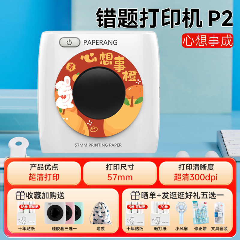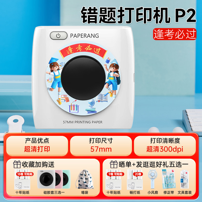 P3错题免抄神器迷你迷小型学习便携式 口袋随身学生用家用手机蓝牙官方旗舰 作业帮喵喵机高清错题打印机P1