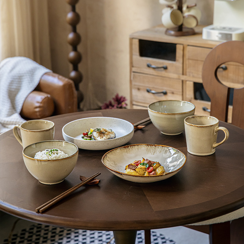 日式 家用陶瓷平盘凉菜圆盘调味碟饭盘实用盘 盘子菜盘餐具碗碟套装