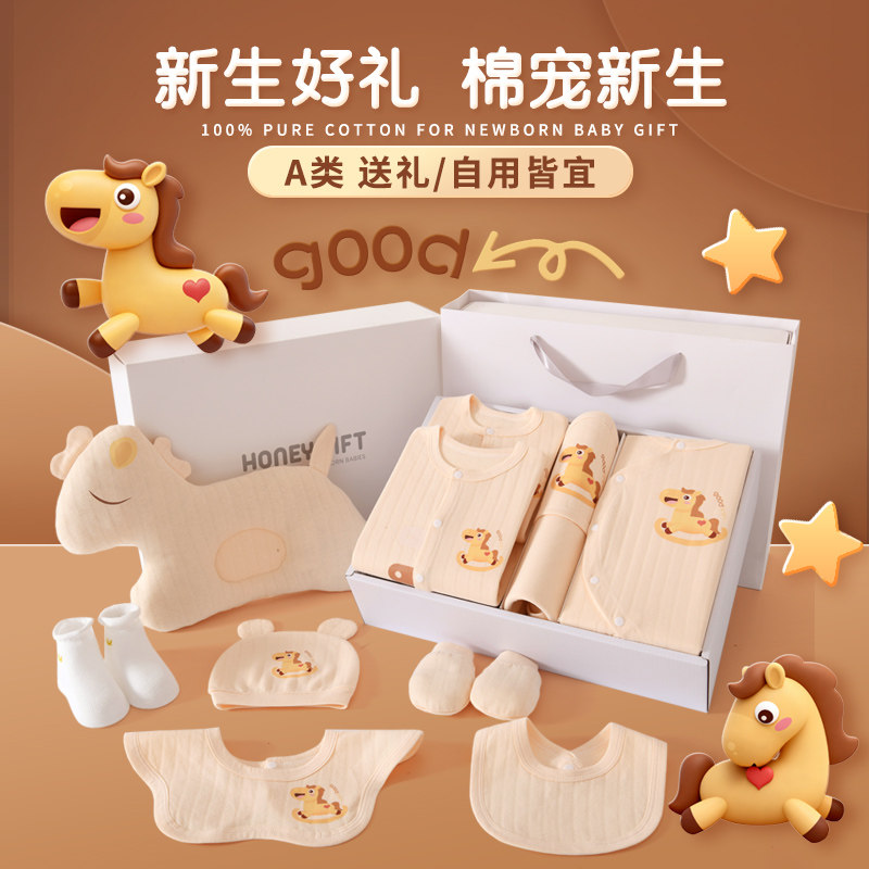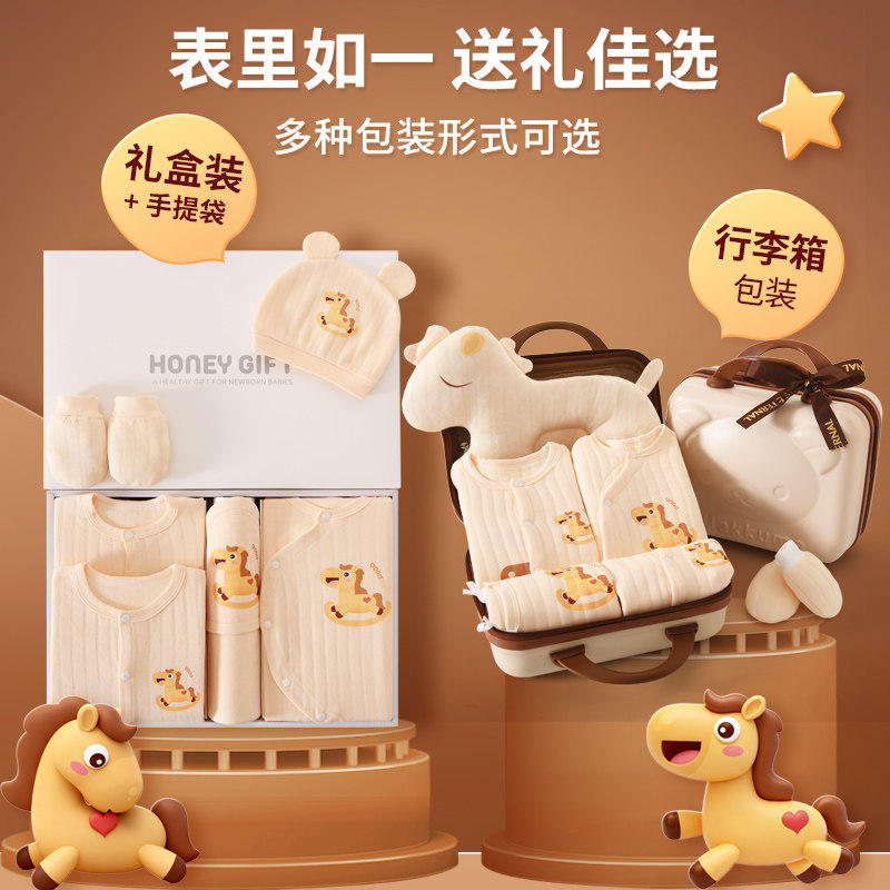 新生宝入院待产包满月见面礼物 马年初生婴儿礼盒秋冬衣服纯棉套装