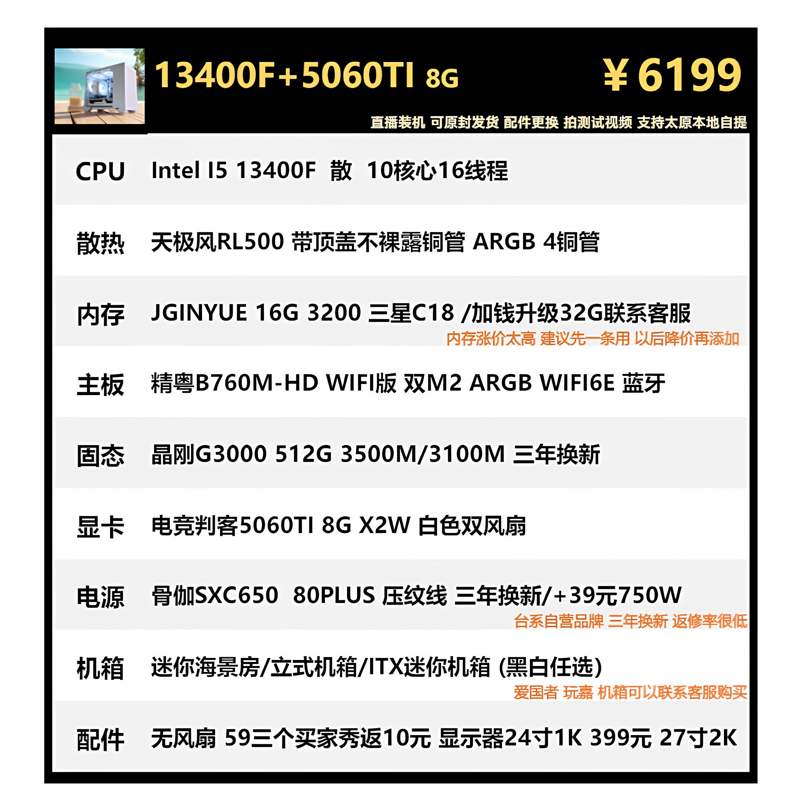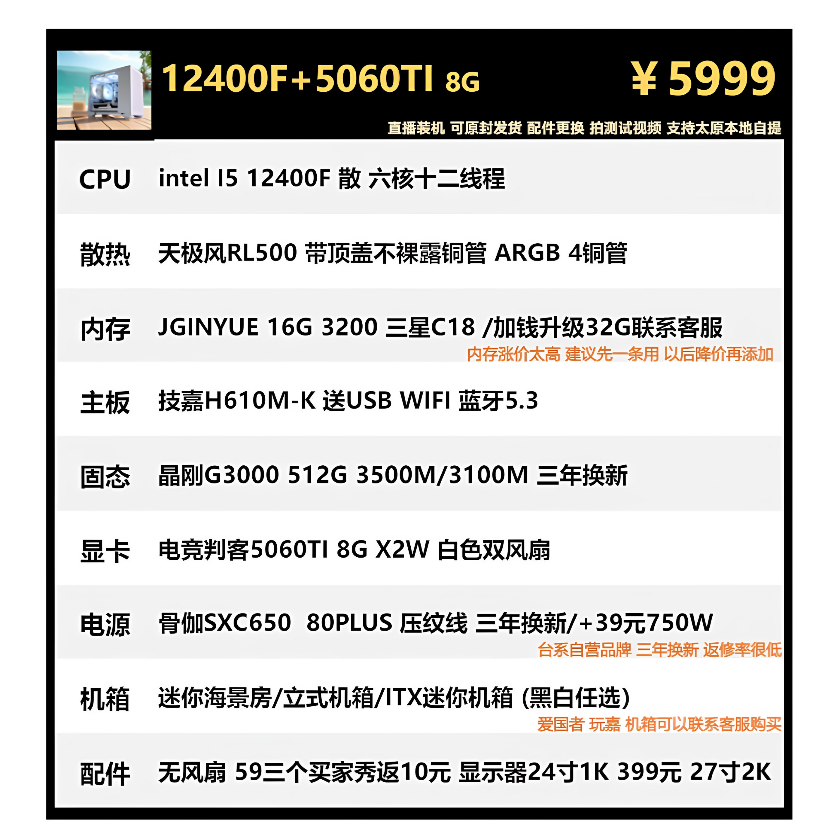 为您提供商品小慧小荷 5600 7500F 9600X主机 5060TI8G三风扇12400F的详细介绍,