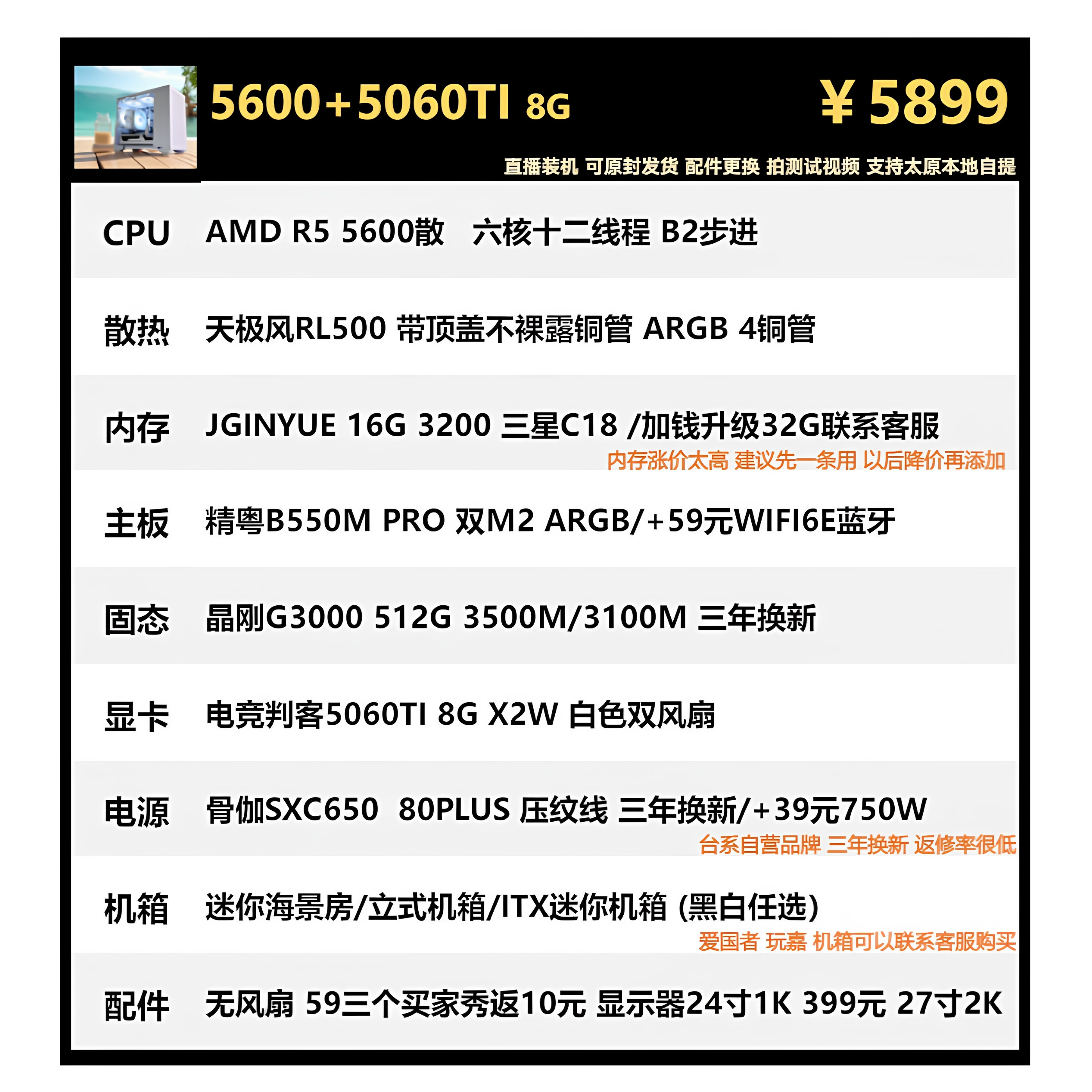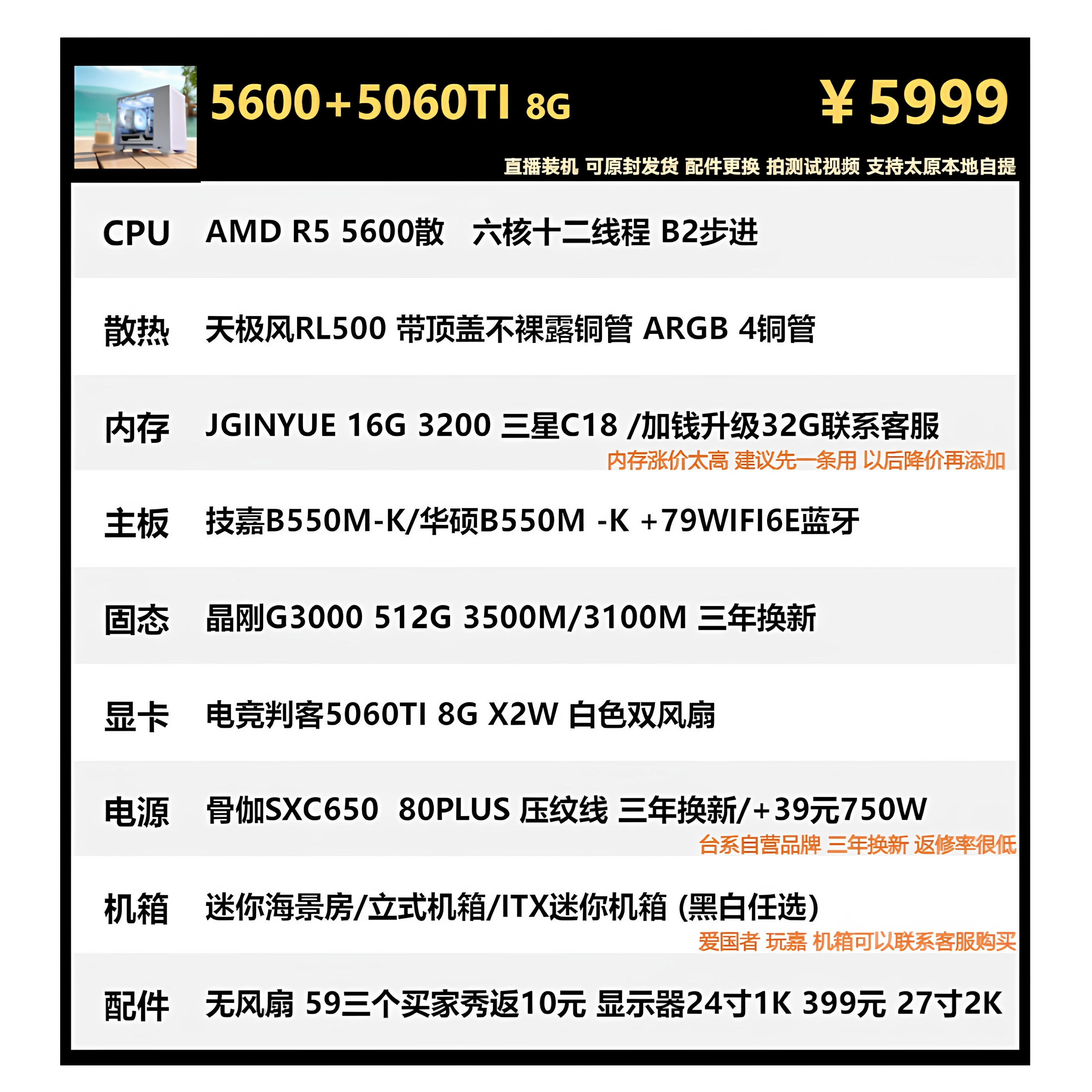 小慧小荷 5600 7500F 9600X主机 5060TI8G三风扇12400F