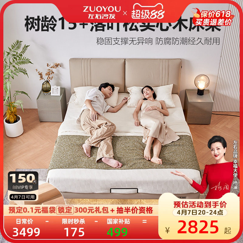 左右官方悬浮床现代简约真皮软床主卧双人大床网红风婚床DZB6019由