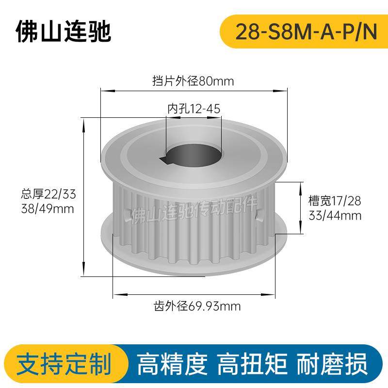 S8M28齿 两面平同步轮AF型 高扭矩同步皮带轮28S8M150 N12由