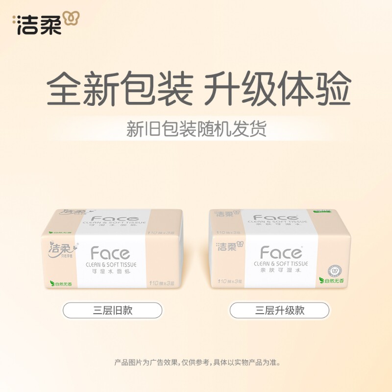 擦手纸面巾纸餐巾纸 洁柔粉face抽纸3层110抽纸巾家用整箱实惠装由