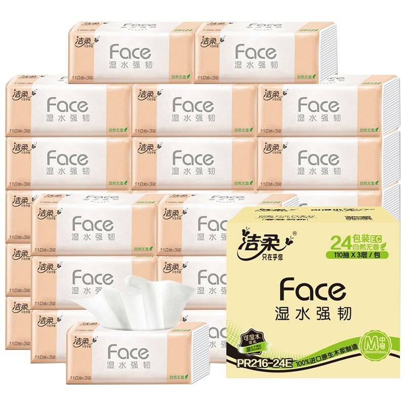 擦手纸面巾纸餐巾纸 洁柔粉face抽纸3层110抽纸巾家用整箱实惠装