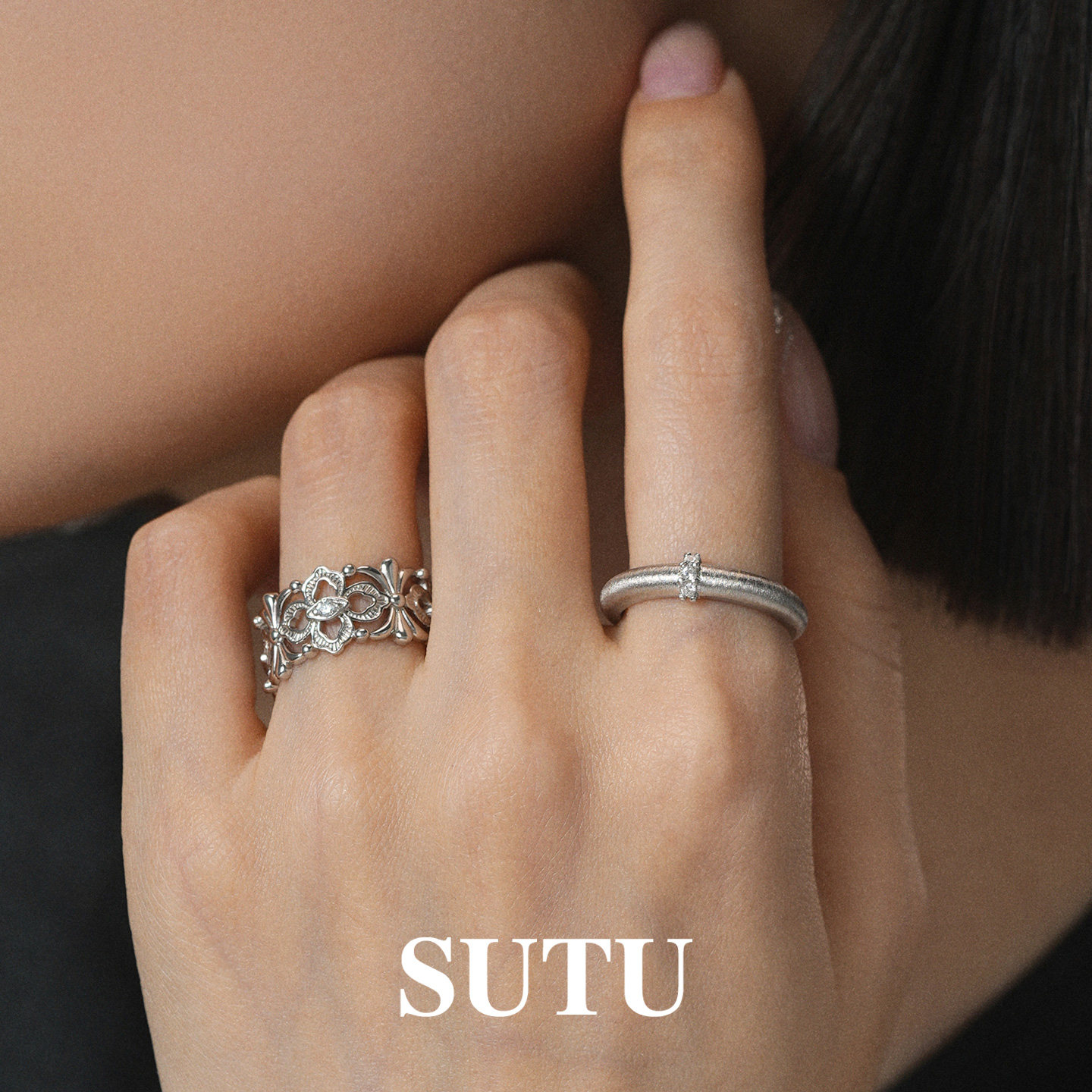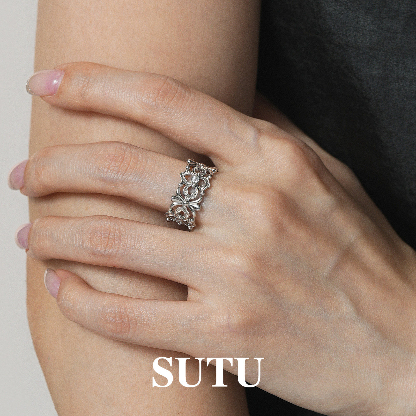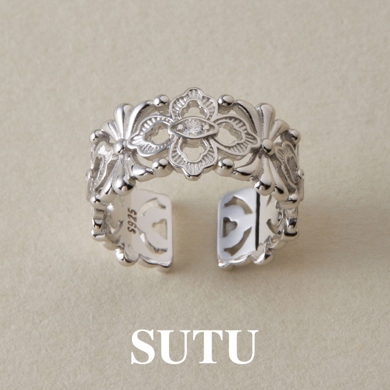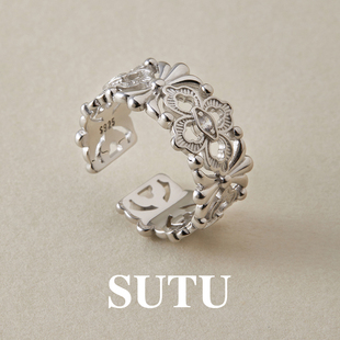 素图sutu戒指镂空雕花925银戒轻奢高级开口指环尾戒小众设计饰品