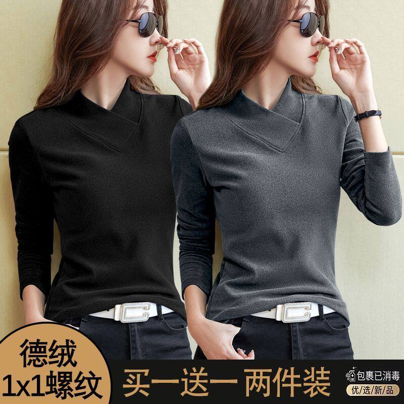 秋冬长袖 t恤保暖上衣 中老年半高领德绒打底衫 清仓捡漏外贸妈妈装