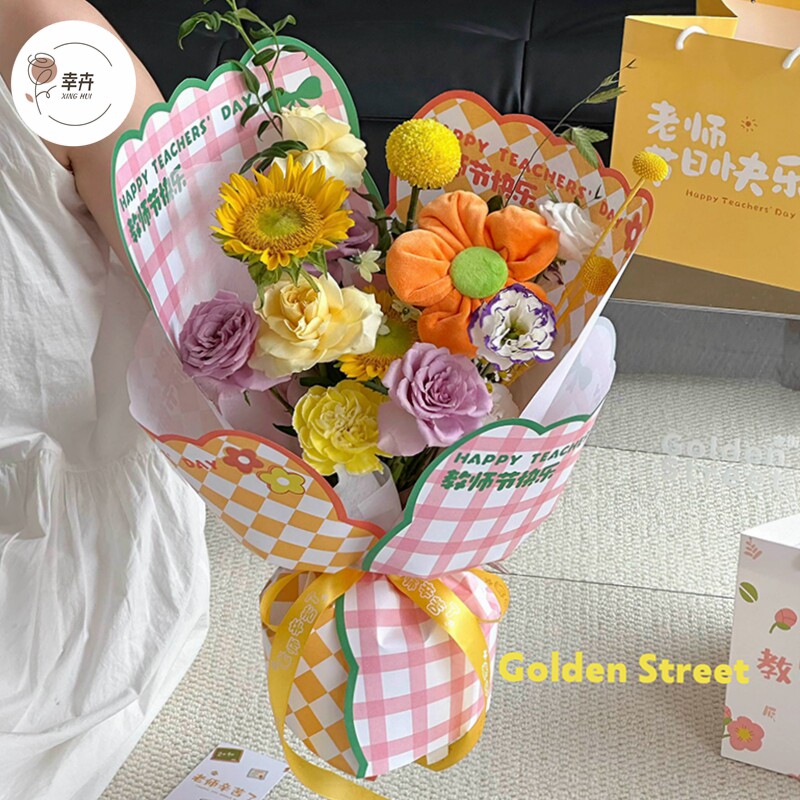 纸单支小花束包花纸彩色艺术牛皮纸送老师 教师节向日葵花束包装由