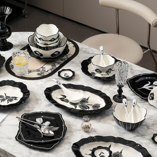 2025新款 家用盘子碗组合瓷碗日式 米饭碗简约陶瓷碗筷套装 碗碟套装