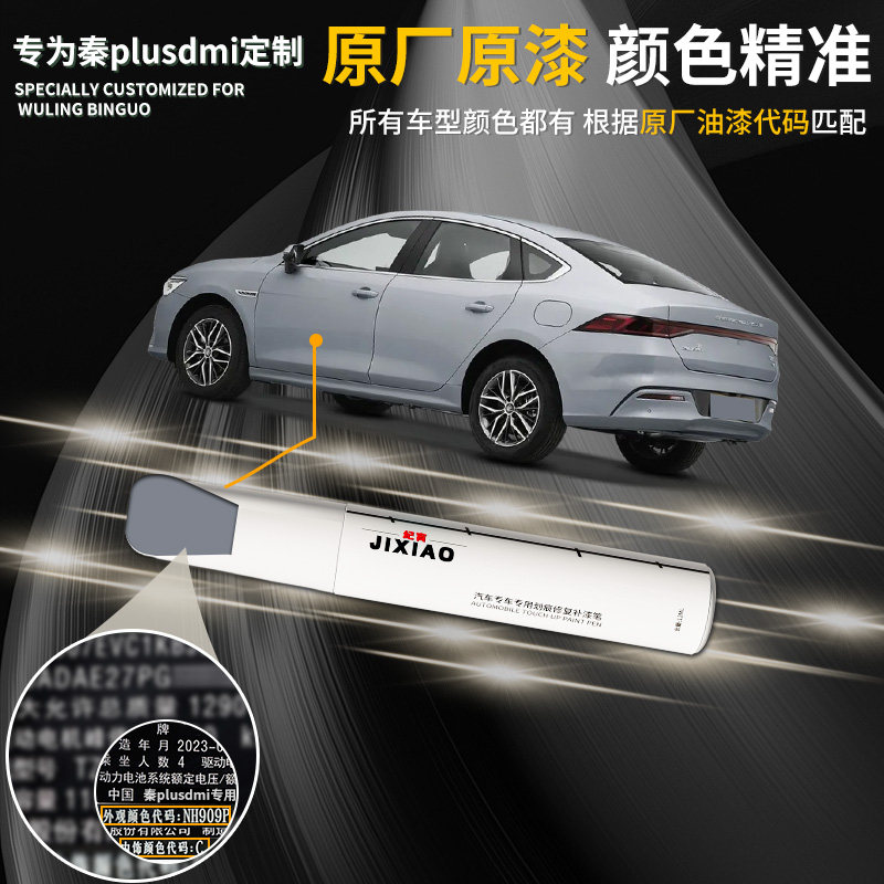 适用比亚迪秦plusdmi补漆笔时光灰雪域白plus汽车原车漆修复划痕