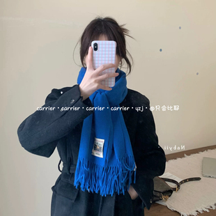 克莱因蓝~韩国东大门纯色针织围巾仿羊绒披肩两用流苏情侣围脖潮