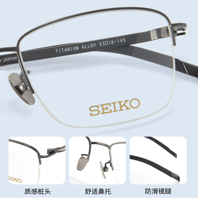 为您提供商品半框钛材眼镜框架可配度数S9016 SEIKO精工眼镜进口系列商务男款的详细介绍,
