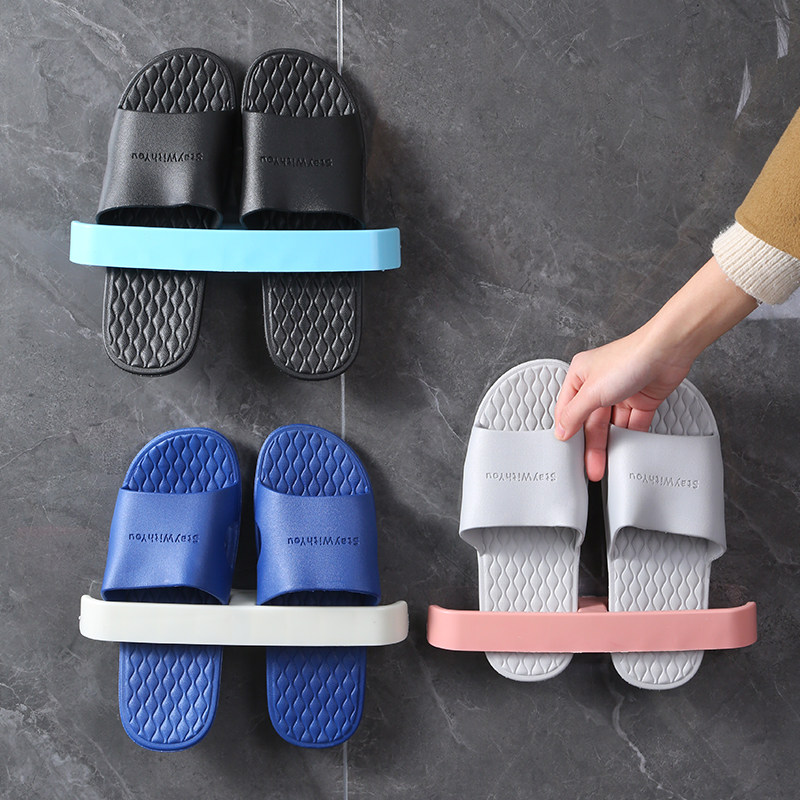 拖鞋 架卫生间壁挂置物架多功能浴室毛巾架家用收纳挂架 架免打孔鞋由