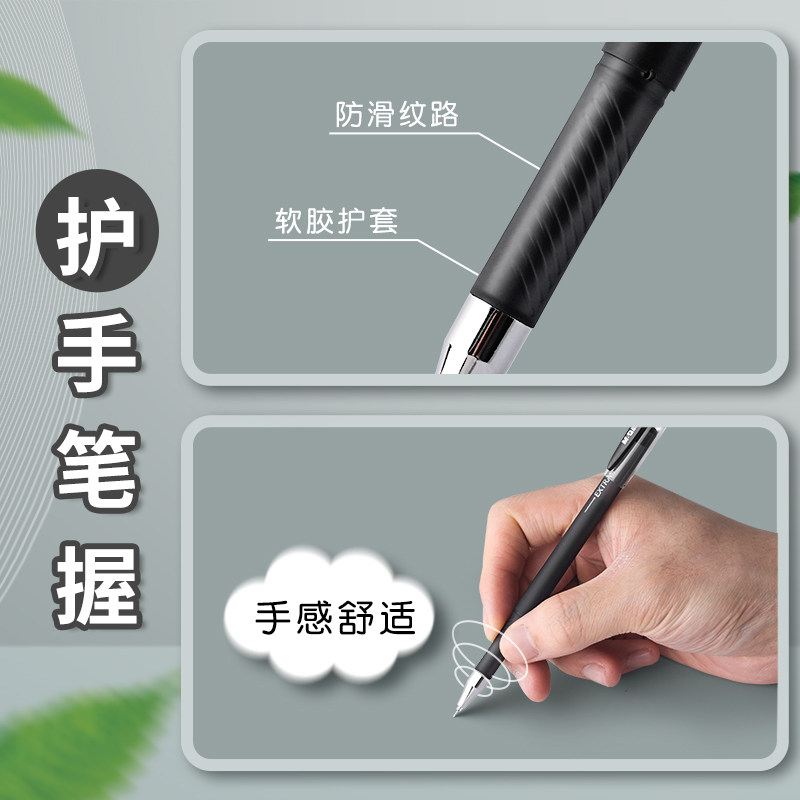 云握ST中性笔刷题笔速干按动水性笔舒适云握手软胶学生练字黑笔