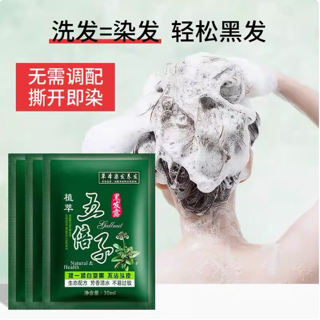 为您提供商品五贝子植物染发剂一洗黑纯官方正品 专用染发膏 自然黑不沾头皮男士的详细介绍,