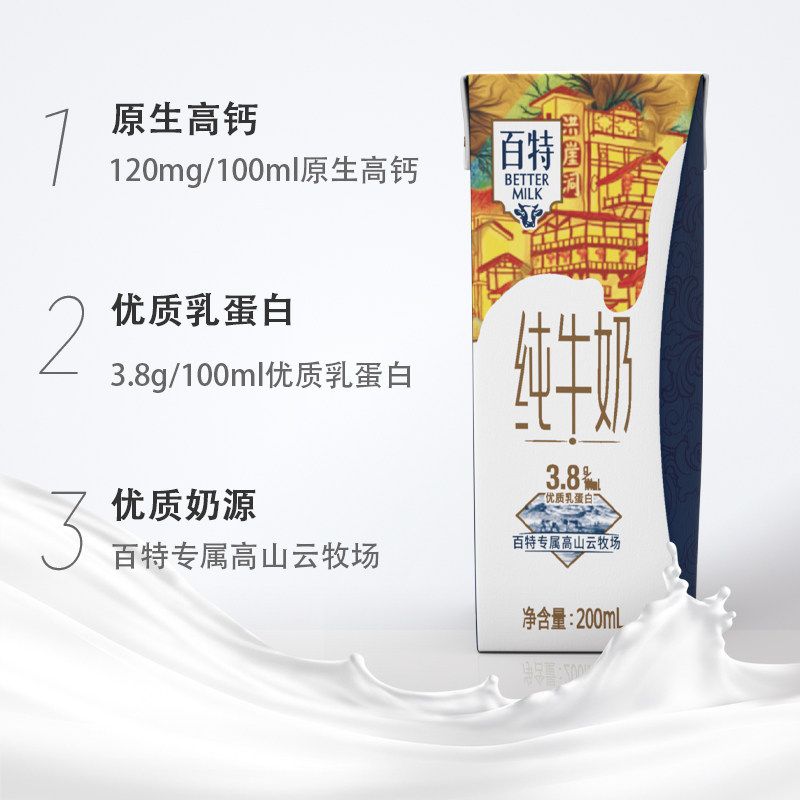 为您提供商品纯牛奶200mL 10盒高钙低脂营养早餐奶3.8g优质乳蛋白 百特的详细介绍,