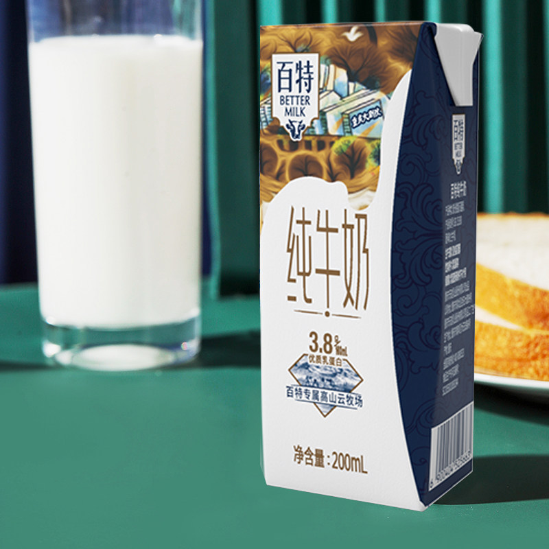纯牛奶200mL 10盒高钙低脂营养早餐奶3.8g优质乳蛋白 百特由