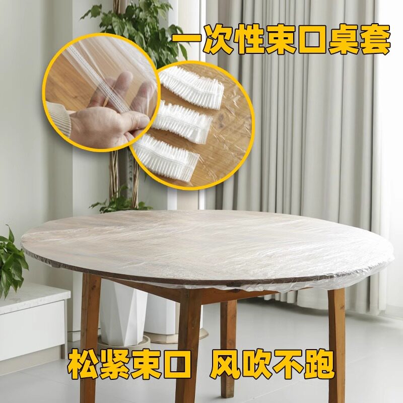 一次性桌布圆方桌束口松紧带生日露营大排档透明加厚餐桌台布 新款由