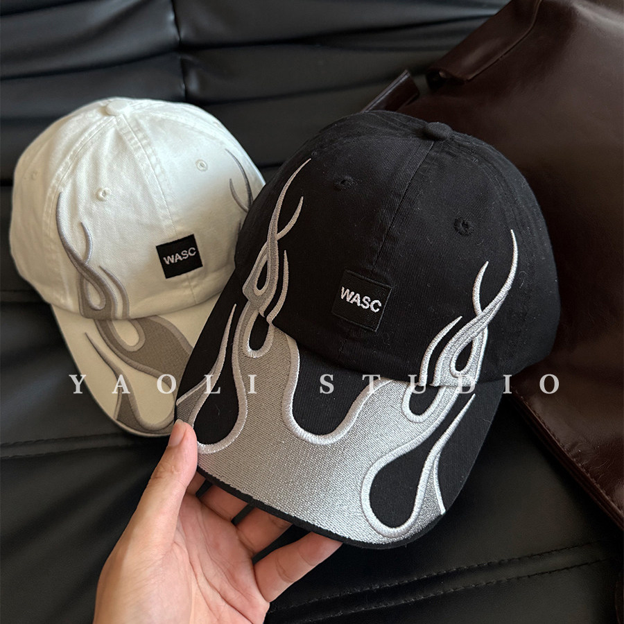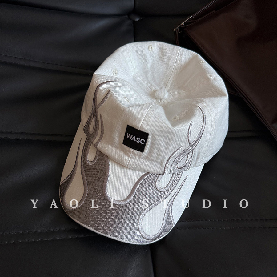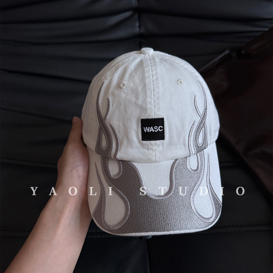 YAOLI刺绣wasc火焰显脸小棒球帽子女春夏户外遮阳防晒软顶鸭舌帽