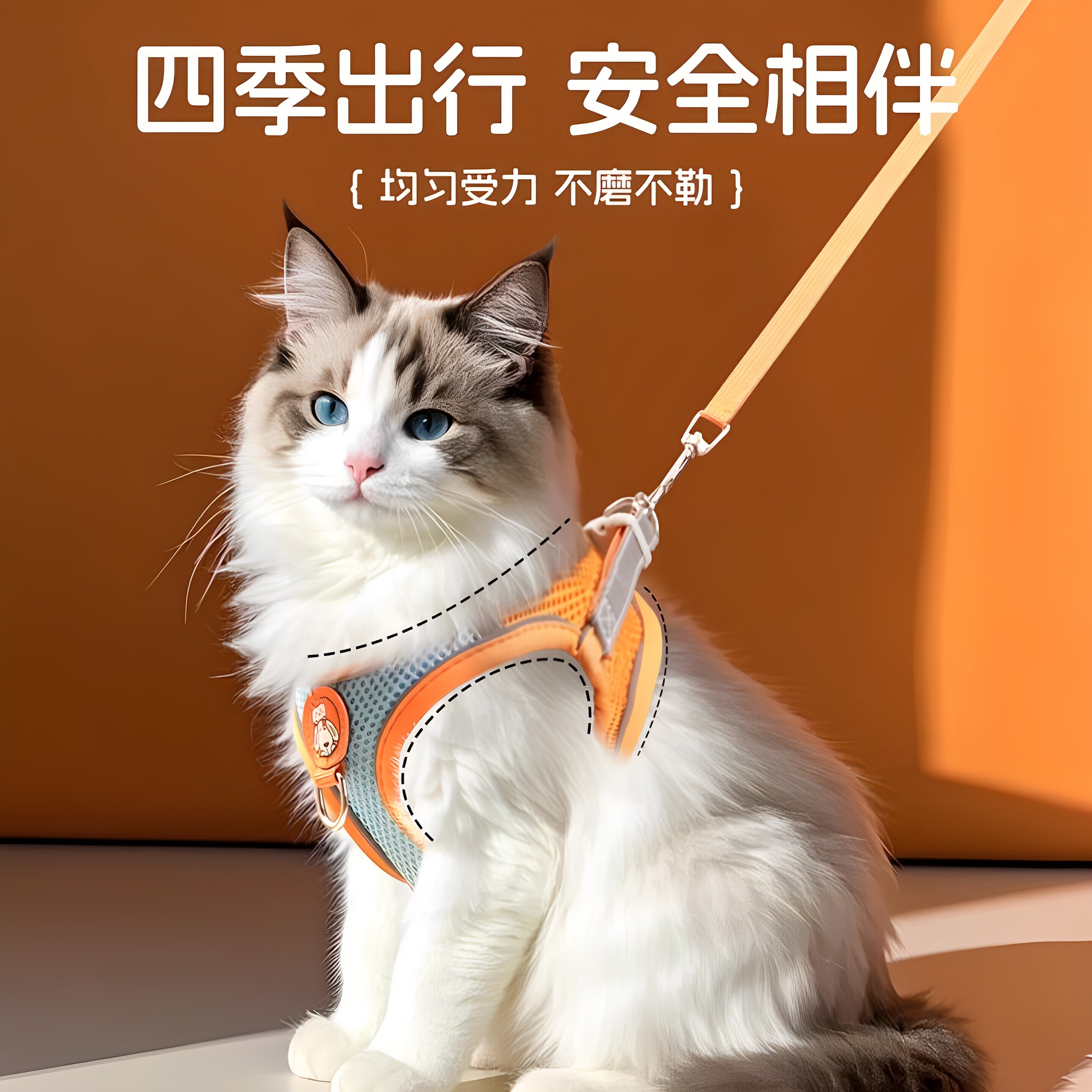溜猫神器 猫咪牵引绳防挣脱外出专用透气胸背牵引绳春夏外出背心式