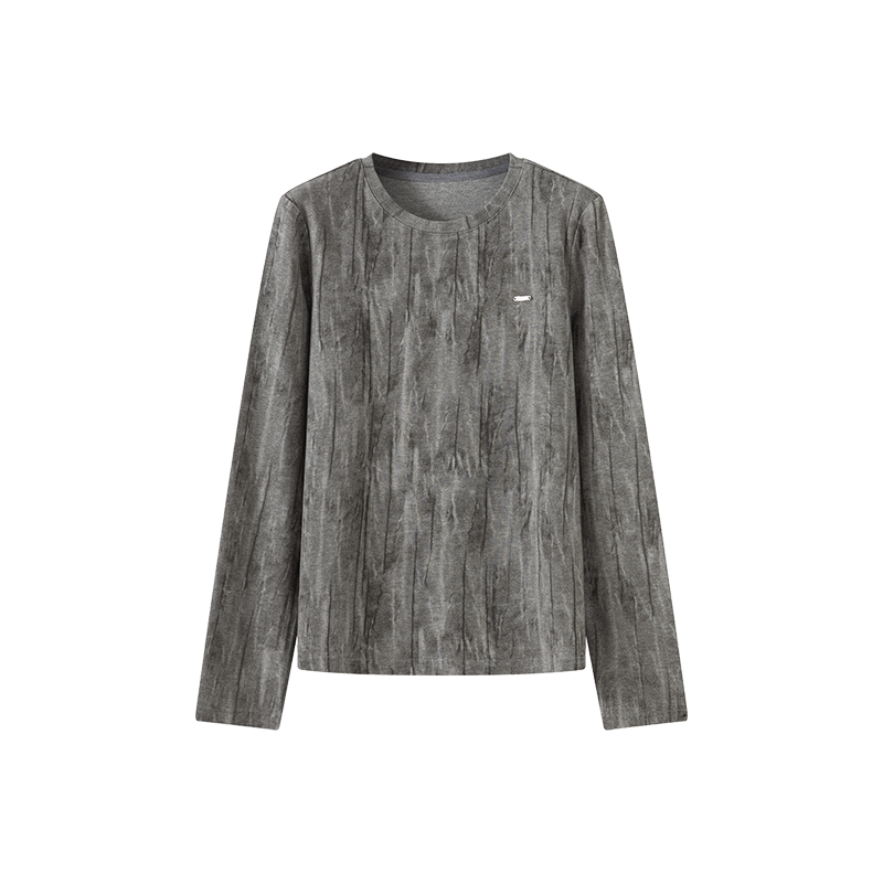 沫晗依美晕染肌理感长袖 新款 时尚 休闲基础扎染圆领T恤女 2026春季
