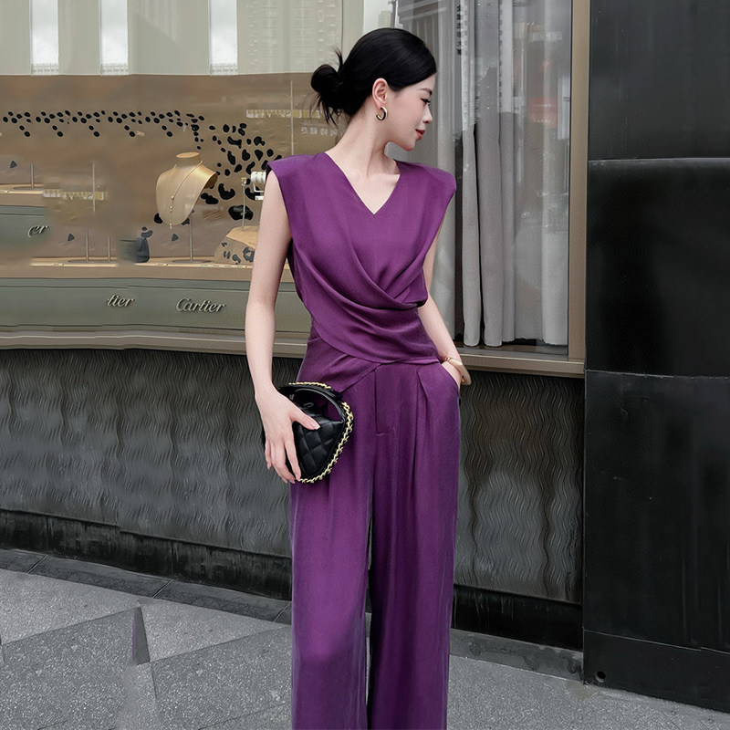 为您提供商品砂洗铜氨丝上衣百搭气质阔腿裤 2026夏季 新款 时尚 两件套 高级感法式的详细介绍,