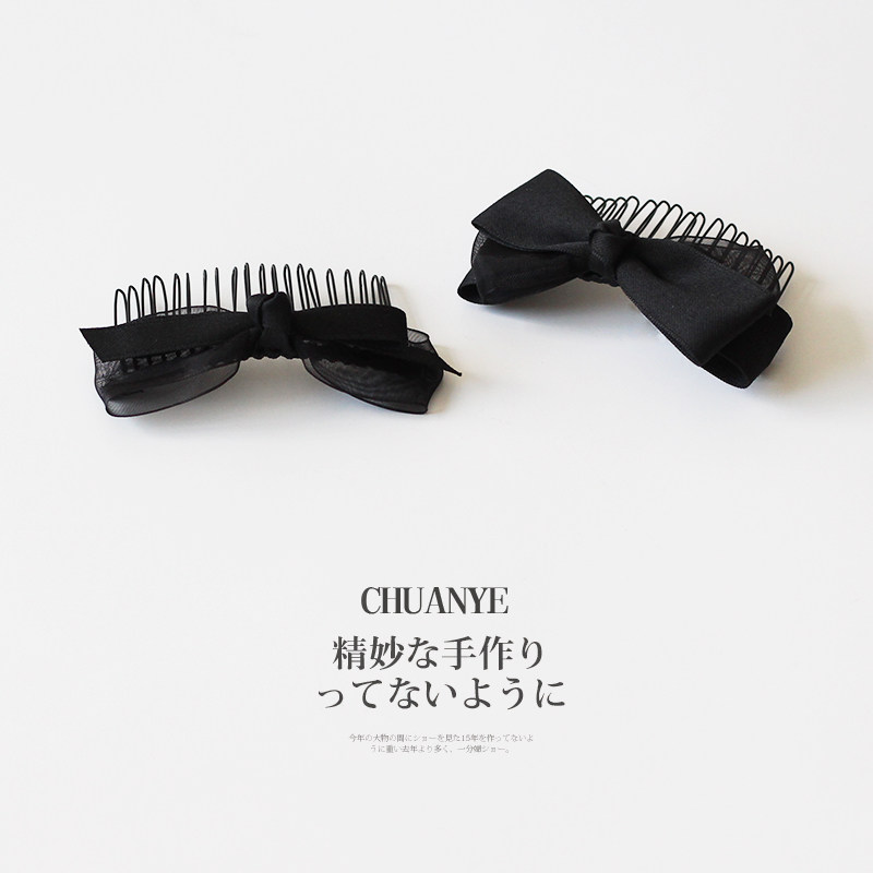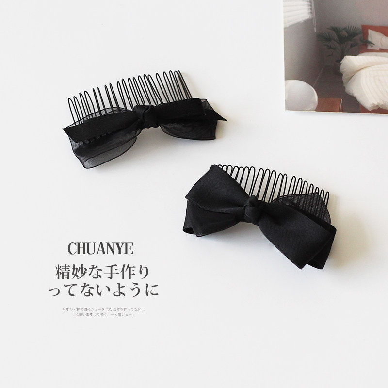 简约时尚 碎发整理神器头饰发饰 蕾丝黑色蝴蝶结发梳女新款 川野法式