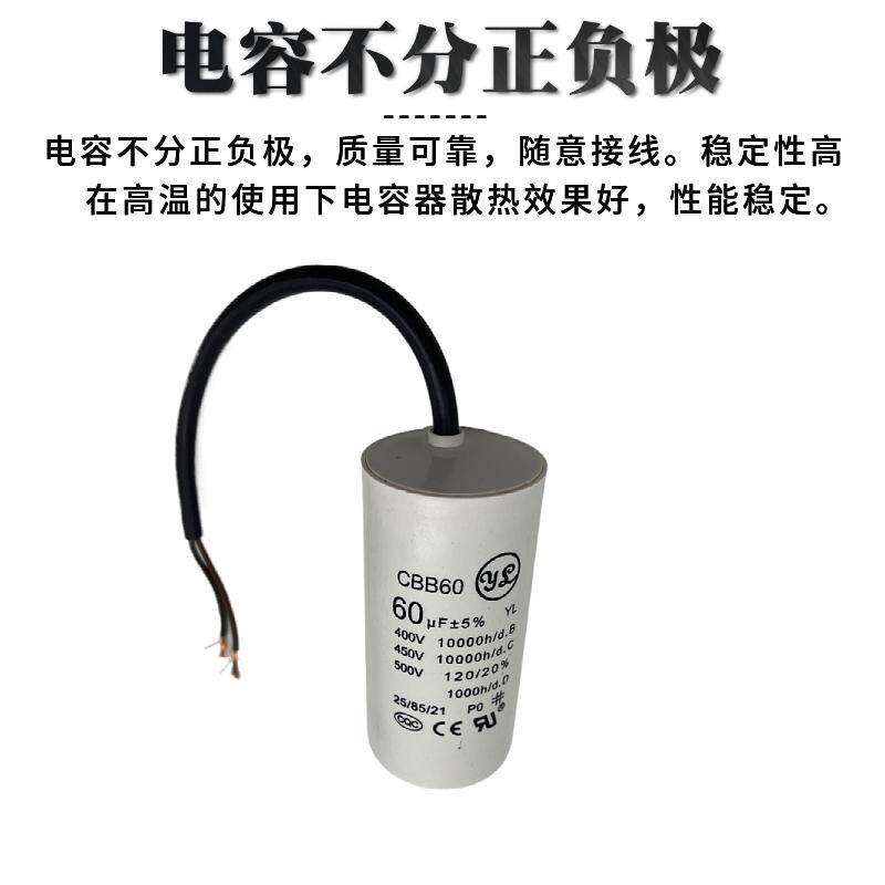 为您提供商品450V60UF甩干脱水水泵电机启动电容薄膜 CBB60洗衣机运行电容500V的详细介绍,