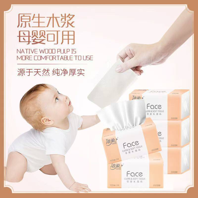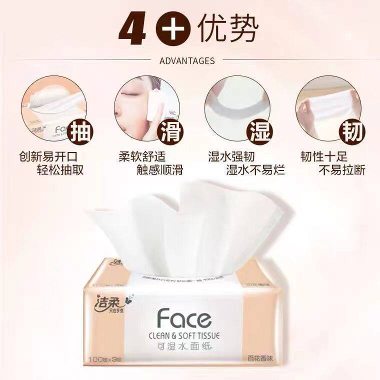 洁柔抽纸Face百花香味3层可湿水面纸巾卫生纸家用餐巾纸实惠装