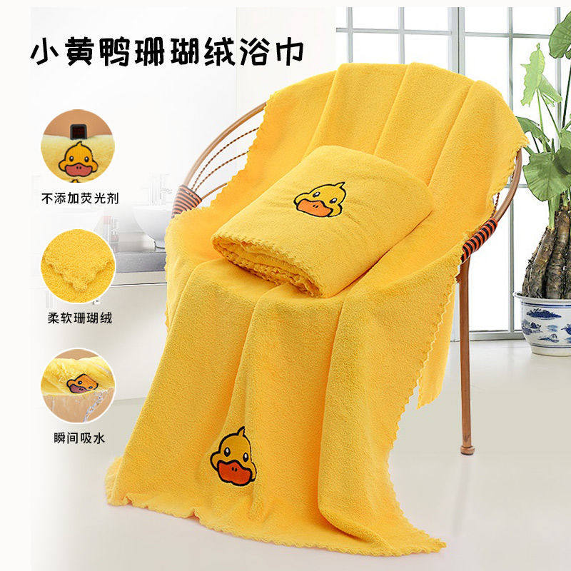 小黄鸭布咚珊瑚绒浴巾儿童洗澡专用裹全身大童家用柔软舒适吸水