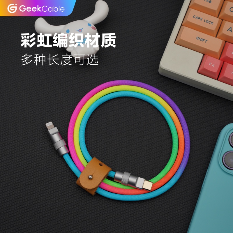 为您提供商品GeekCable极鲨充电数据线彩虹编织七彩适用于苹果iPhone安卓华为三星小米OPPO等手机笔记本平板iPad快充线的详细介绍,