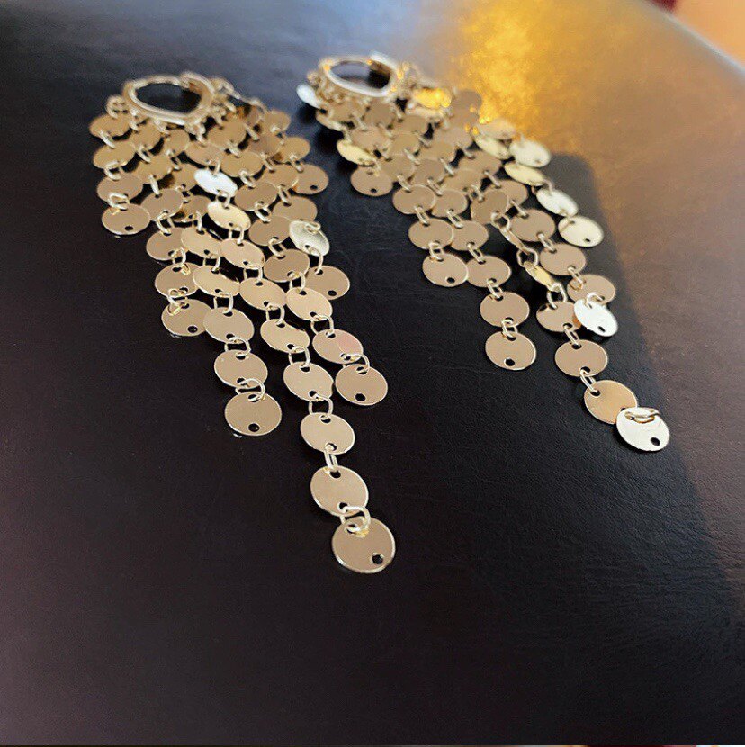 纯银针亮片流苏耳环2022年新款 夸张耳饰 潮轻奢小众高级感2023爆款