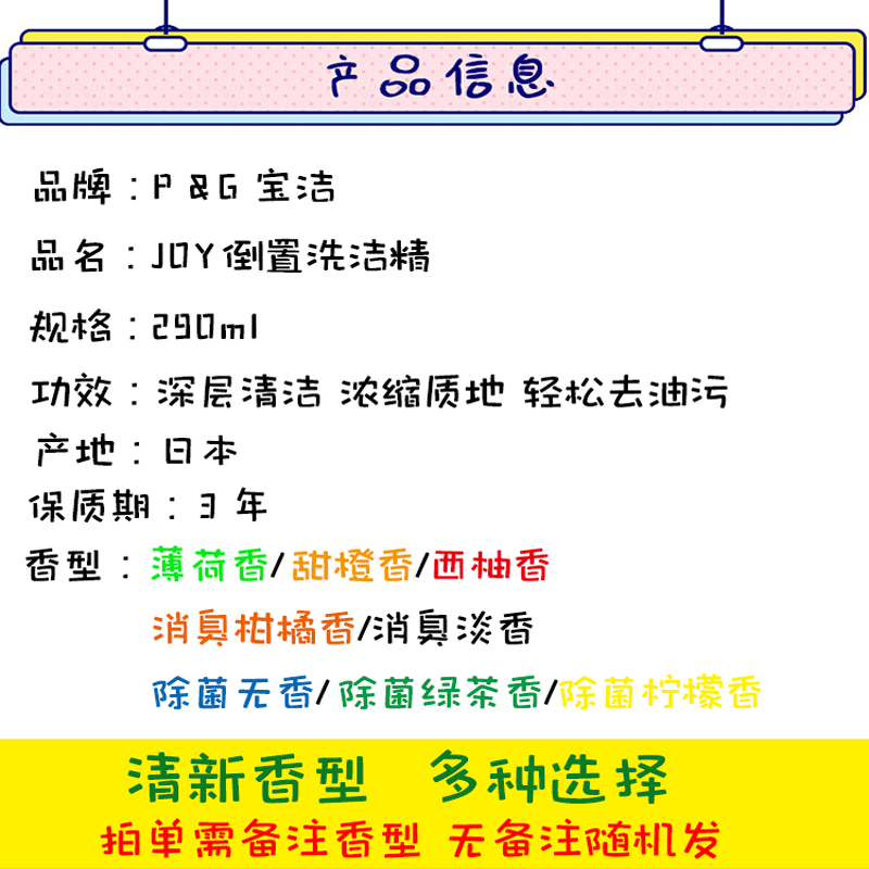 为您提供商品洗洁精家用除菌厨房去油洗碗液290ml 日本进口宝洁JOY超浓缩倒置款的详细介绍,