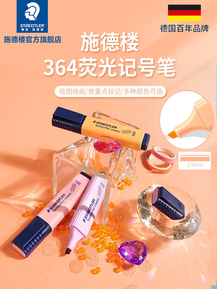 为您提供商品正品 大容量快干 画重点手账笔 德国施德楼364糖果色荧光笔记号笔的详细介绍,