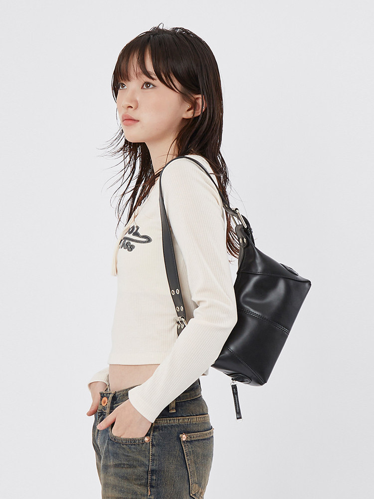 eyelet 韩代Raucohouse Glossy leather shoulde手提腋下包 strap