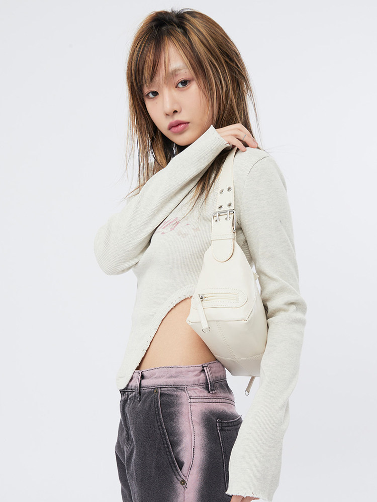 eyelet 韩代Raucohouse Glossy leather shoulde手提腋下包 strap由