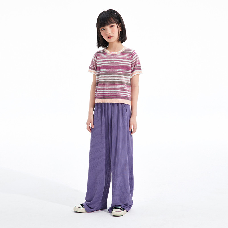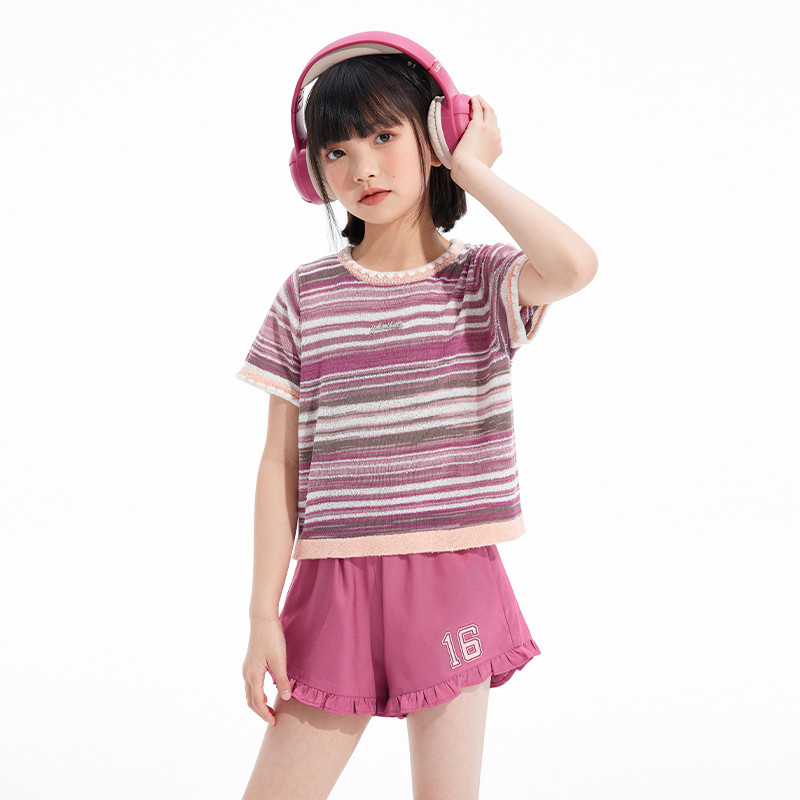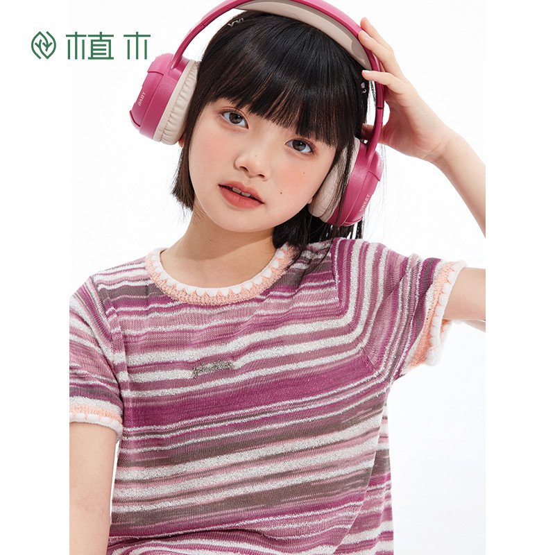 为您提供商品透气针织衫 植木女童T恤2026夏季 新款 中大童条纹短袖 儿童T恤童装的详细介绍,