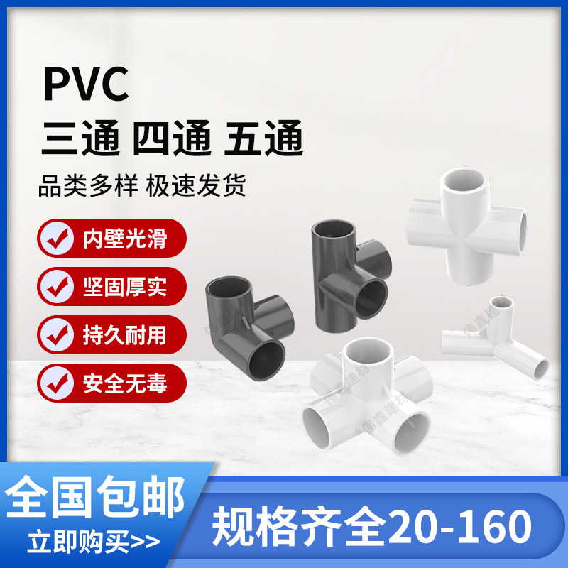 pvc水管配件大全弯头立体三通四通鱼缸上下给水管件胶粘塑料接头