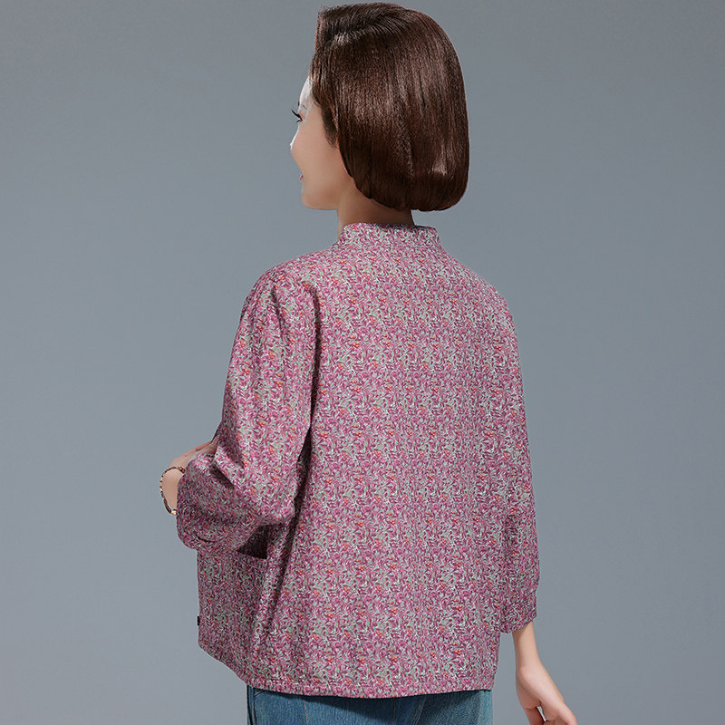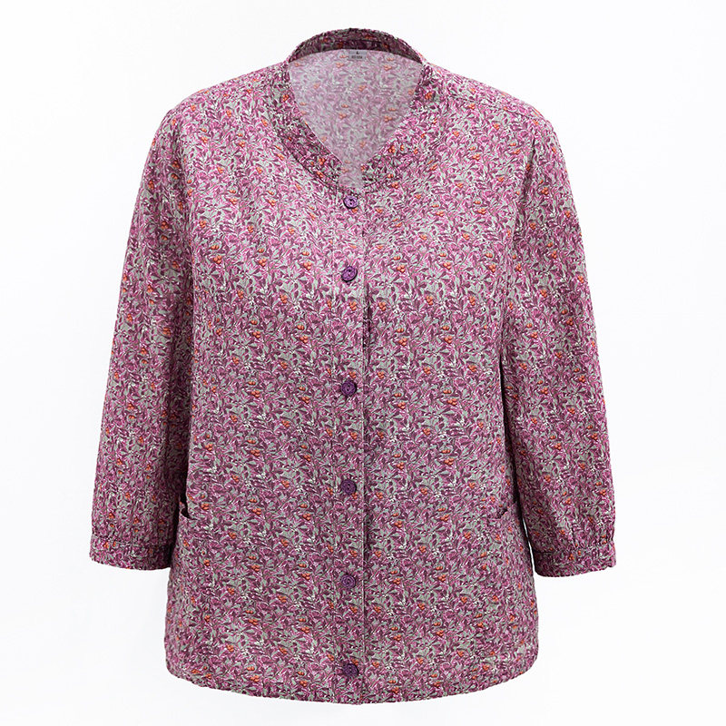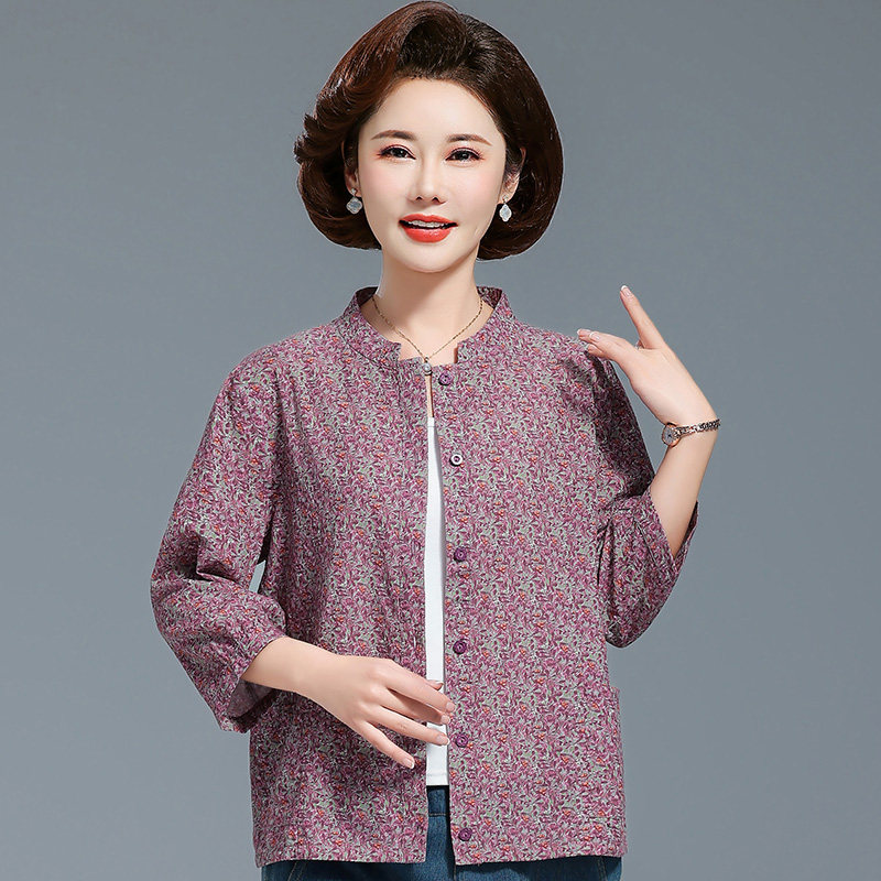 圆领女开衫 中老年妈妈装 老太太 纯棉宽松加大码 衬衫 春夏新款 七分袖