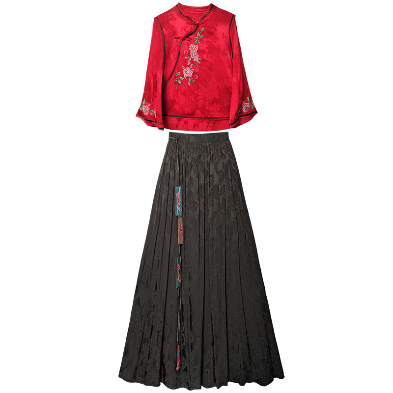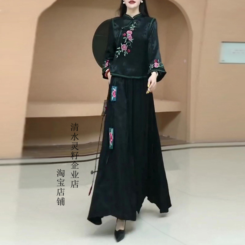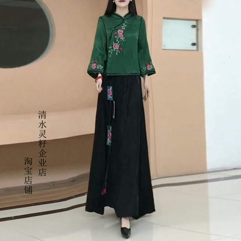 为您提供商品衬衫 春季 新中式 九分袖 女 上衣半身裙长裙a字裙民族风刺绣两件套装的详细介绍,