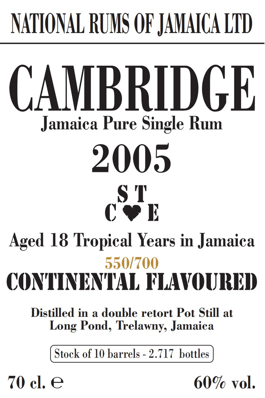 STCE 已售磬 18年牙买加朗姆酒60度 Cambridge 2005 Long Pond由