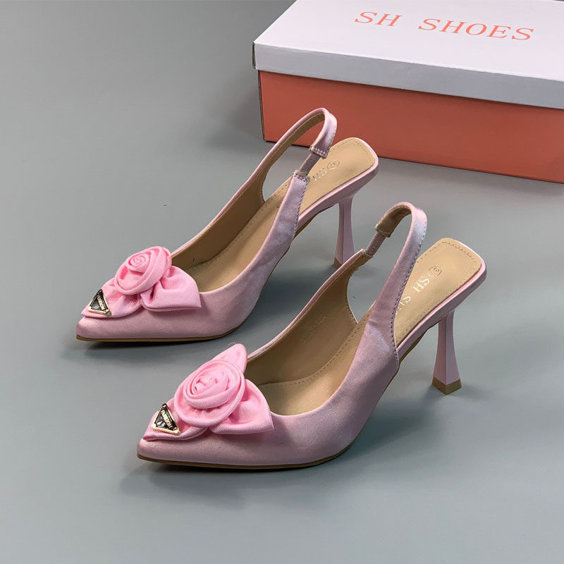 包头尖头凉鞋 欧美外贸原单大码 女细跟单鞋 高跟鞋 女鞋 花朵后空夏季由